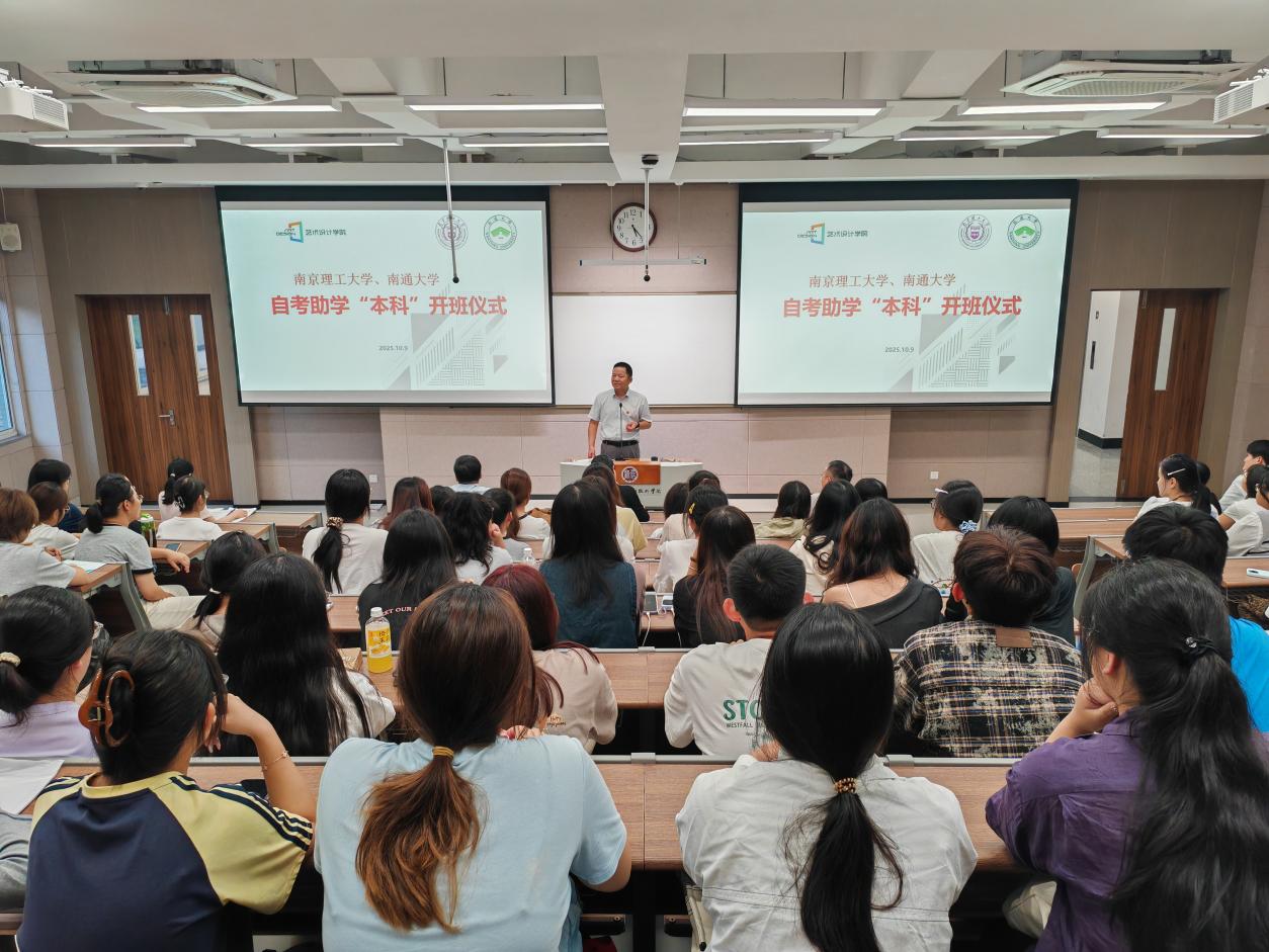 10月9日晚,艺术设计学院为自考助学本科班(南京理工大学、南通大学)的2025级学员,举行了隆重简朴的开班式。党总支书记武汉、院长刘雪花、副院长陈曦出席,党总支副书记孙晔珵主持。