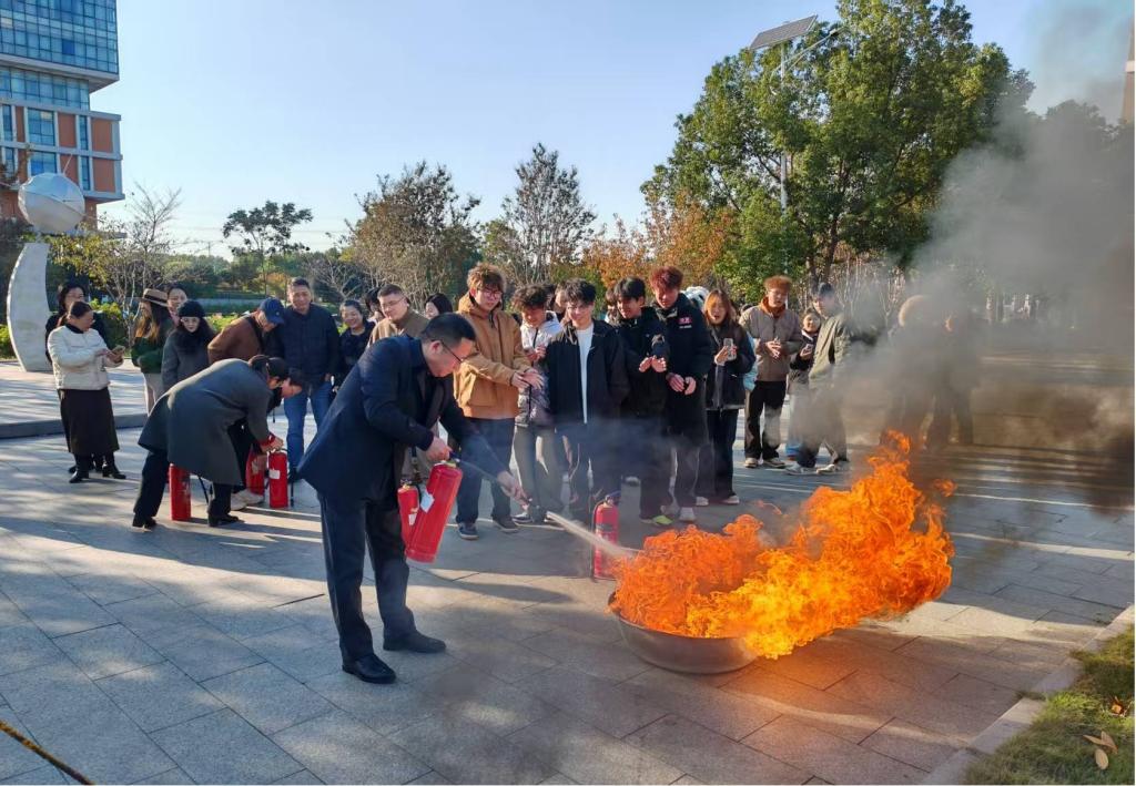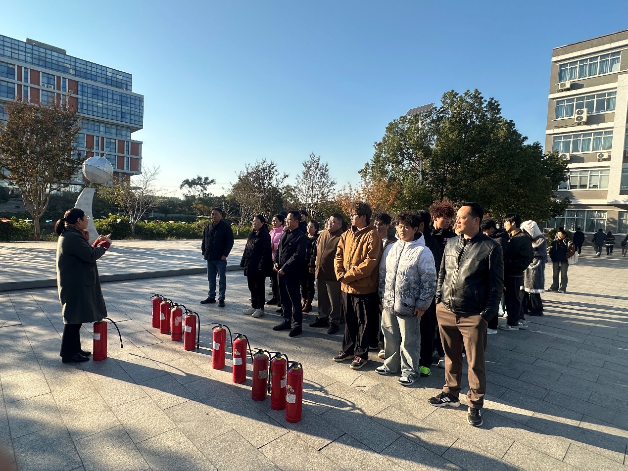 实训室管理员陈加烙老师作校园安全工作专题讲座,会后在学校保卫处的支持下,我院全体教工和学生代表逐个进行灭火器使用的实操演练。