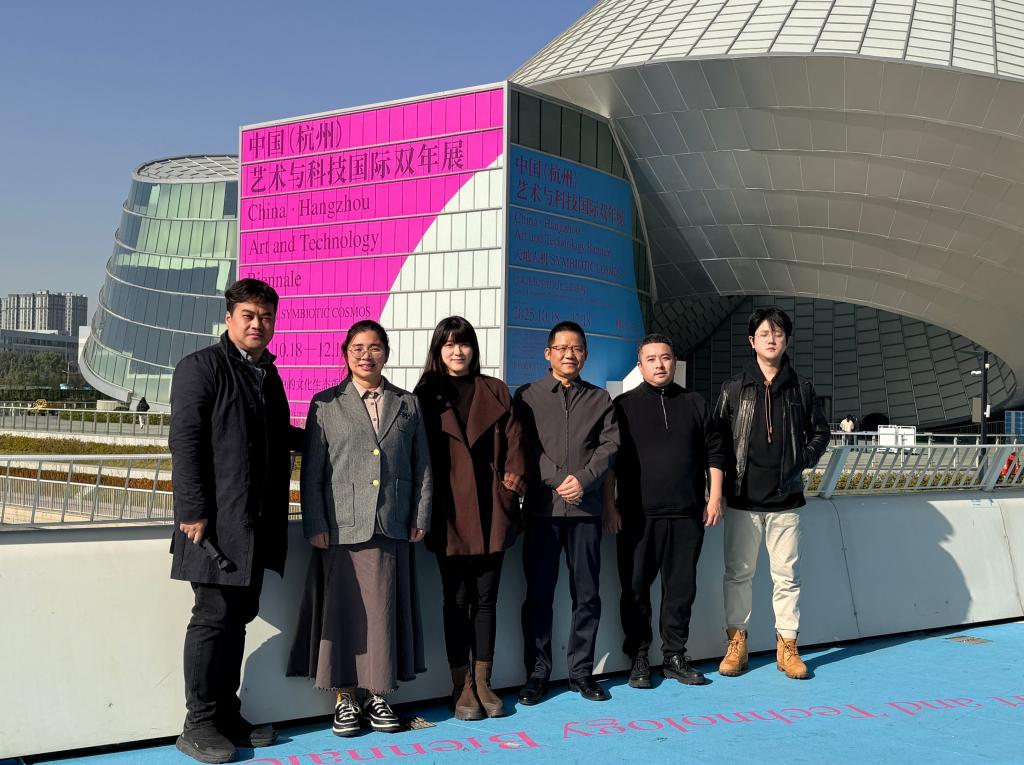 在余杭美术馆,我院调研团队观摩了“天地人机——中国(杭州)艺术与科技国际双年展”,展览汇聚了全球前沿的艺术与科技融合的作品。通过沉浸式体验,教师们收获了丰富的教学素材与创作灵感,表示将把观展启迪融入今后的教学与科研工作中,进一步提高教学效果、丰富科研成果。