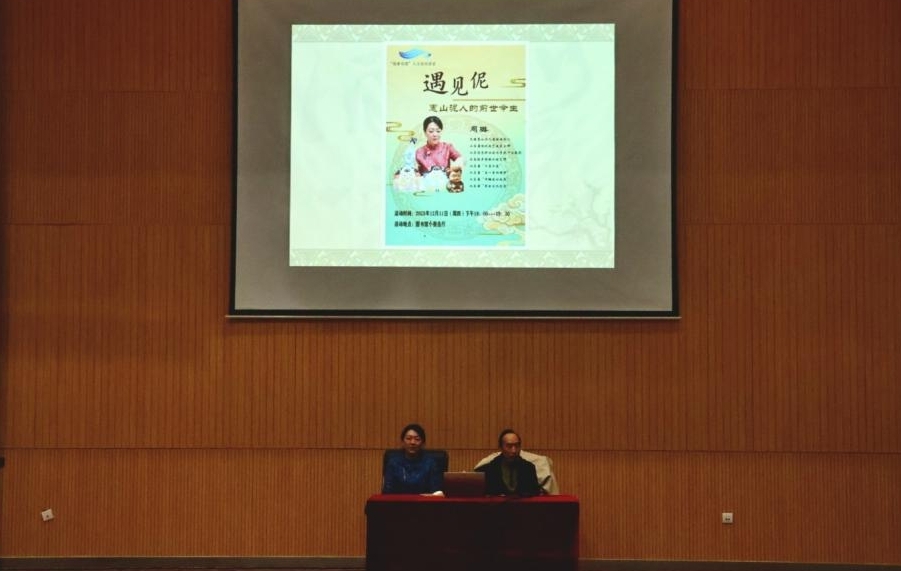 12月11日晚,无锡惠山泥人省级非物质文化遗产项目传承人、江苏省大国工匠、学校产业教授周璐女士,来校参加“锡事明理”无锡市人文社科讲堂活动,在报告厅为师生带来一场题为《遇见伲—惠山泥人的前世今生》的美育大课堂。艺术设计学院党总支副书记孙晔珵参加活动,惠山泥塑技能大师工作室负责人杨武生主持。