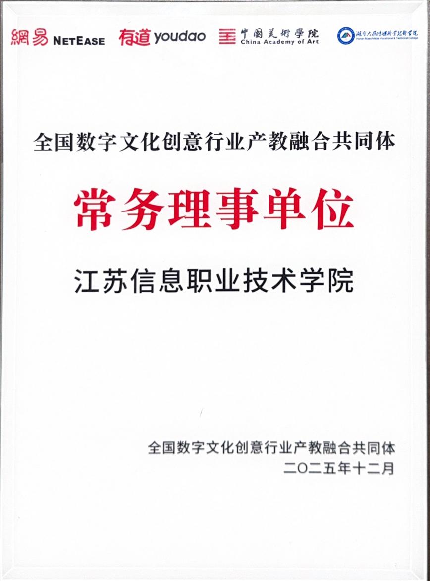 12月26日至28日,全国数字文化创意行业产教融合共同体会议在杭州举办,江苏信息职业技术学院正式成为全国数字文化创意行业产教融合共同体常务理事单位,彰显我院在数字文创教育与实践方面的综合实力和行业影响力。