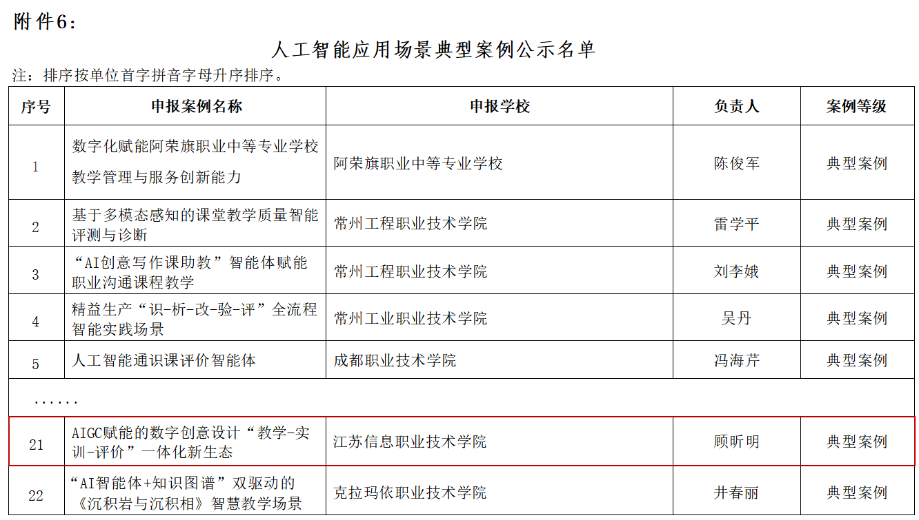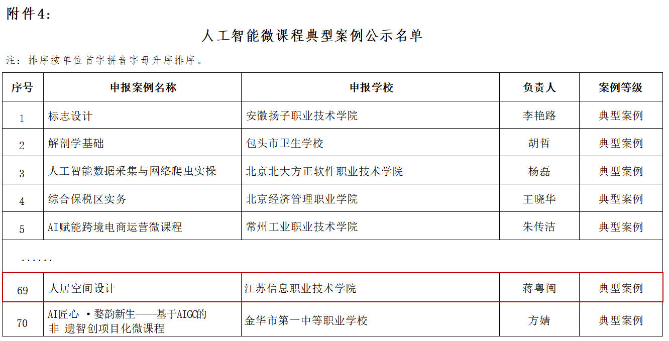 近日,教育部职业院校信息化教学指导委员会公布了“人工智能应用典型案例”遴选结果,我院有三项案例成功入选,全覆盖本次遴选的三大类别。其中,刘雪花老师申报的《人工智能通识》获评“人工智能通识课程优秀典型案例”;蒋粤闽老师申报的《人居空间设计》获评“人工智能微课程典型案例”;顾昕明老师申报的《AIGC赋能的数字创意设计“教学-实训-评价”一体化新生态》获评“人工智能应用场景典型案例”。
