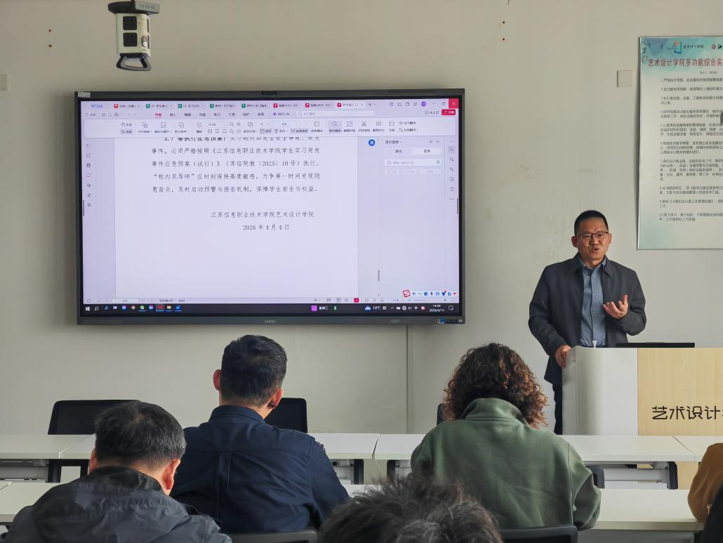 陈曦结合艺术设计类专业实习特点,系统解读了学校《学生实习管理办法》《学生实习突发事件应急预案》及我院《学生跨省、加班夜班及法定节假日实习管理规定》等制度文件。