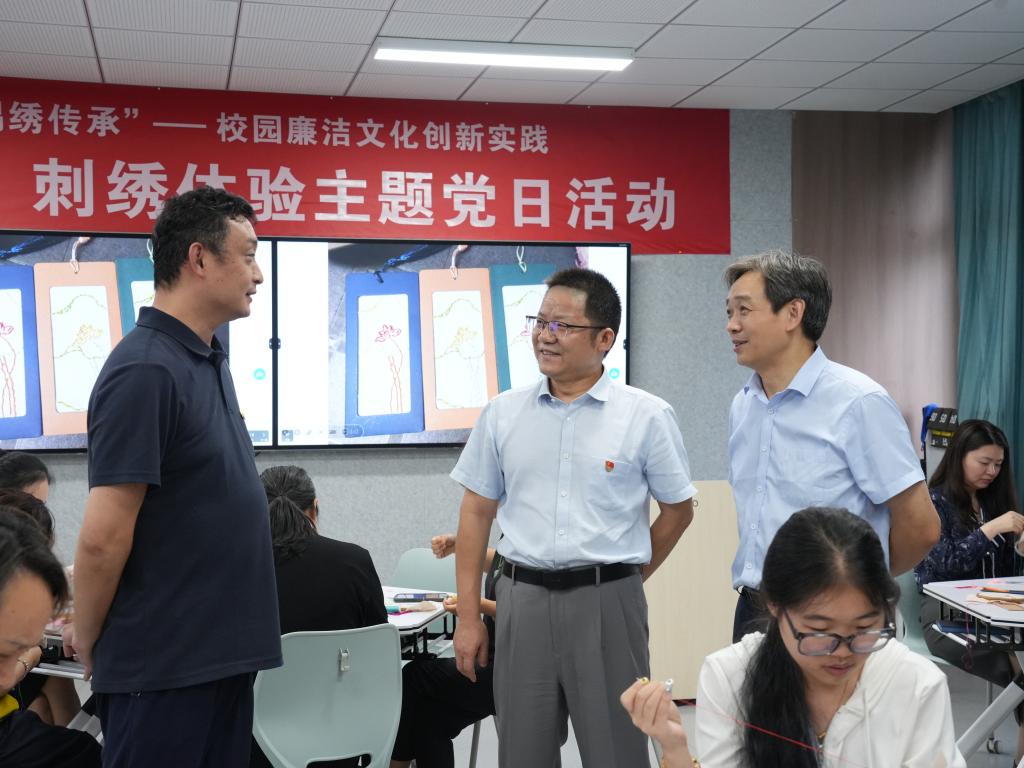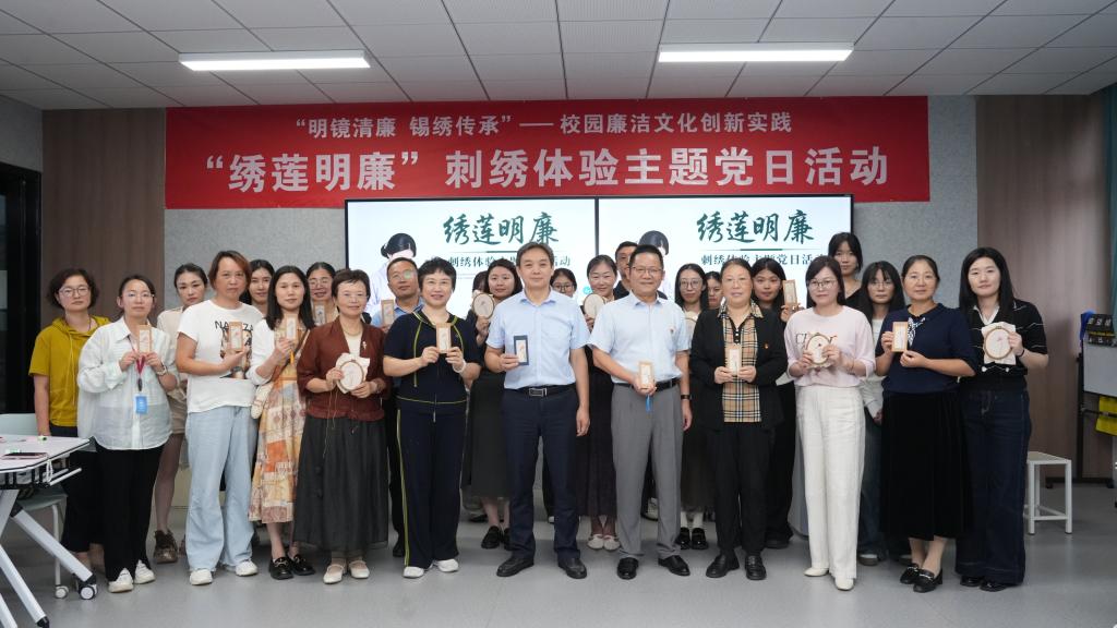 10月15日,由艺术设计学院党总支、学校纪委办共同主办,教工第二党支部、机关第四党支部具体承办,“绣莲明廉”无锡精微绣体验主题党日活动,在无锡精微绣工作坊成功举办。学校纪委书记刘文平到场指导廉洁文化建设工作,艺术设计学院党总支书记武汉作活动致词,教工第二党支部书记曹百奎主持活动。