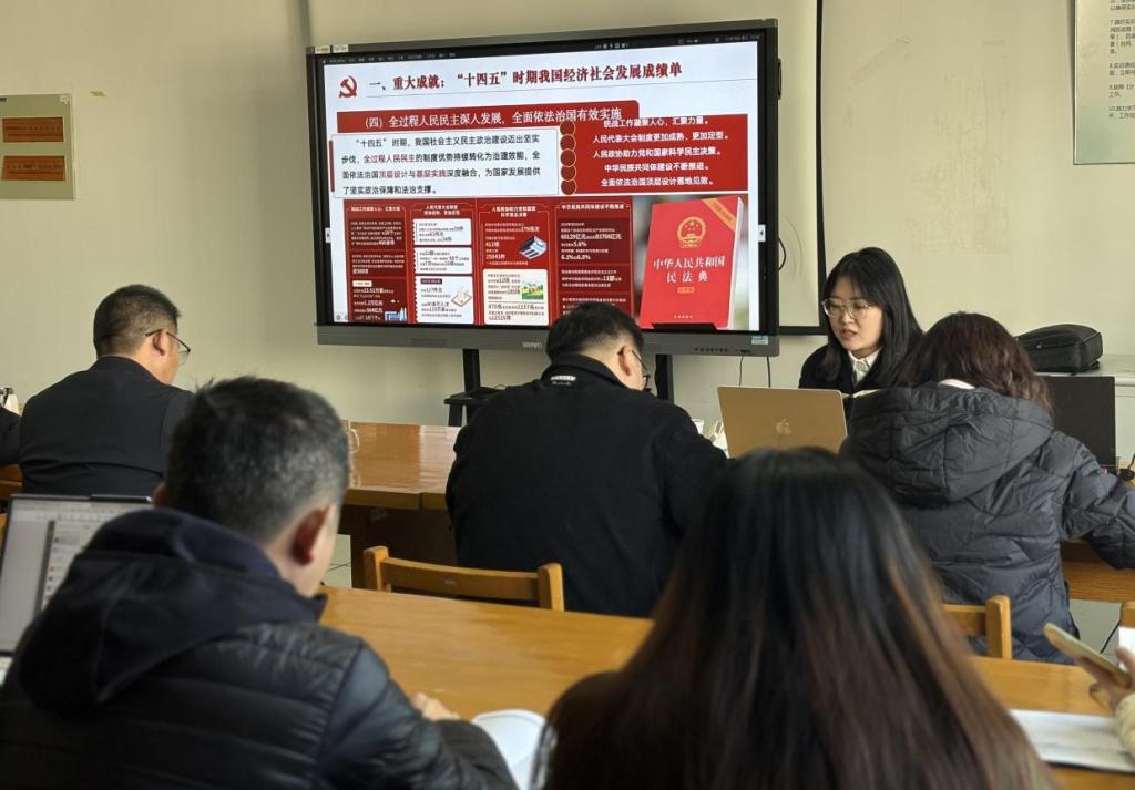 刘雪花在学习总结时强调,深入学习贯彻党的二十届四中全会精神,是当前和今后一个时期全院上下的一项重大政治任务,是指导我院编制“十五五”规划的行动指南。她要求,干部要在学深悟透上下功夫坚持先学一步、学深一层,切实把学习成果转化为生动的教学实践、强大的育人力量和显著的育人成效;党员要在宣传引导上做表率,找准结合点、切入点和融入点,把全会精神有机融入思政课教学体系,把全会精神与学校的育人实践结合起来;全体教师要全面把握党的二十届四中全会精神,在实干担当上求突破,把学习贯彻全会精神与我院的发展相结合,勇担当、善作为,推进各项工作高质量落实。