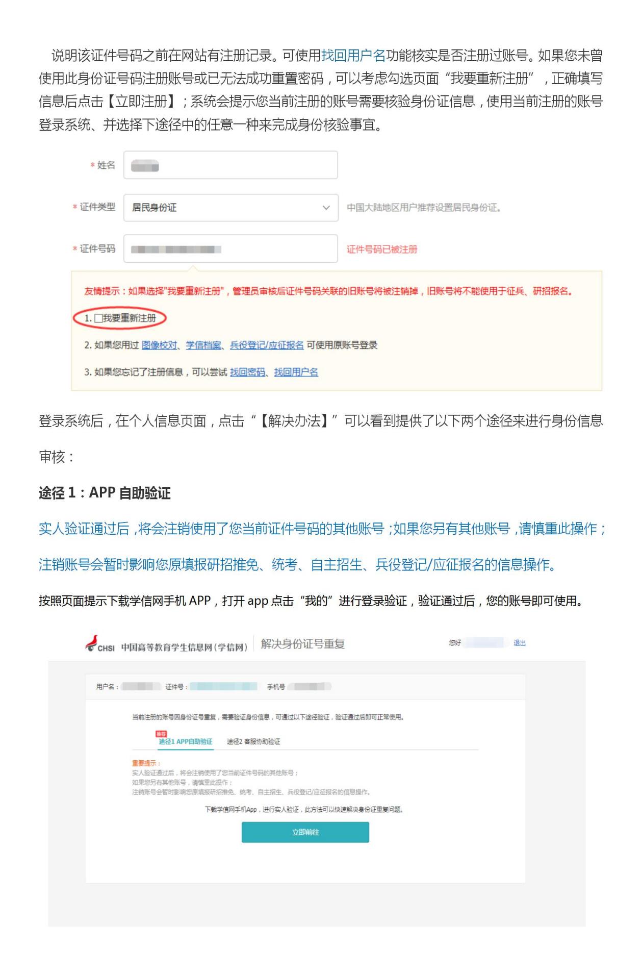 2.身份证号码重复或已被注册,请按图下步骤尝试解决。