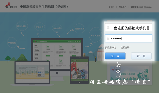 4.注册中如有账号等问题请联系学信网帮助中心或客户热线010-82199588。