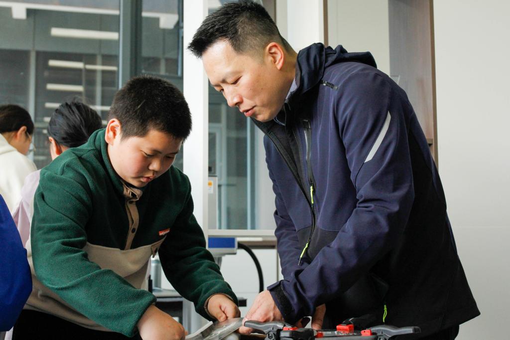 4月2日,汽车与智能交通学院马祥原国家级技能大师工作室,迎来了首批春假职业体验者。来自无锡市12所中小学的120余名学生及家长齐聚校园,在国家级技能大师工作室领办人、世界技能大赛冠军马祥原大师的悉心指导下,共同开启了一场以“金属与匠心”为主题的沉浸式职业体验之旅,让春假时光充满技能温度与劳动乐趣。