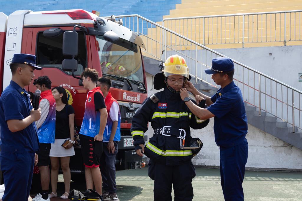 9月17日,学校联合无锡市消防救援支队、惠山区消防救援大队,为全体新生带来了一场内容丰富、形式生动的消防安全培训暨疏散灭火演练活动。副院长宋丽娜、无锡市消防救援支队宣传处参谋周仲皓、惠山区消防救援大队宣教中心参谋严云凯、军训团团长王天伦出席活动。