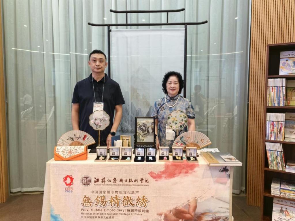 9月12日至16日,应中华职业教育社的邀请,我校江苏省中华优秀传统文化传承基地的无锡精微绣项目参加2025年日本大阪世界博览会中国传统非物质文化遗产项目展示活动。学校特聘教授、国家级非物质文化遗产传承人赵红育大师领衔参与了本次活动。