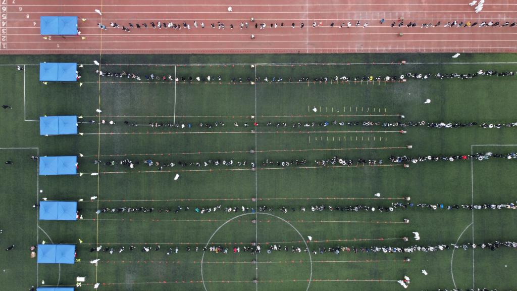 新闻特写:今天,我们捂着口罩整齐站成疏远的默片 明天,我们将穿越人海去拥抱明媚的春天