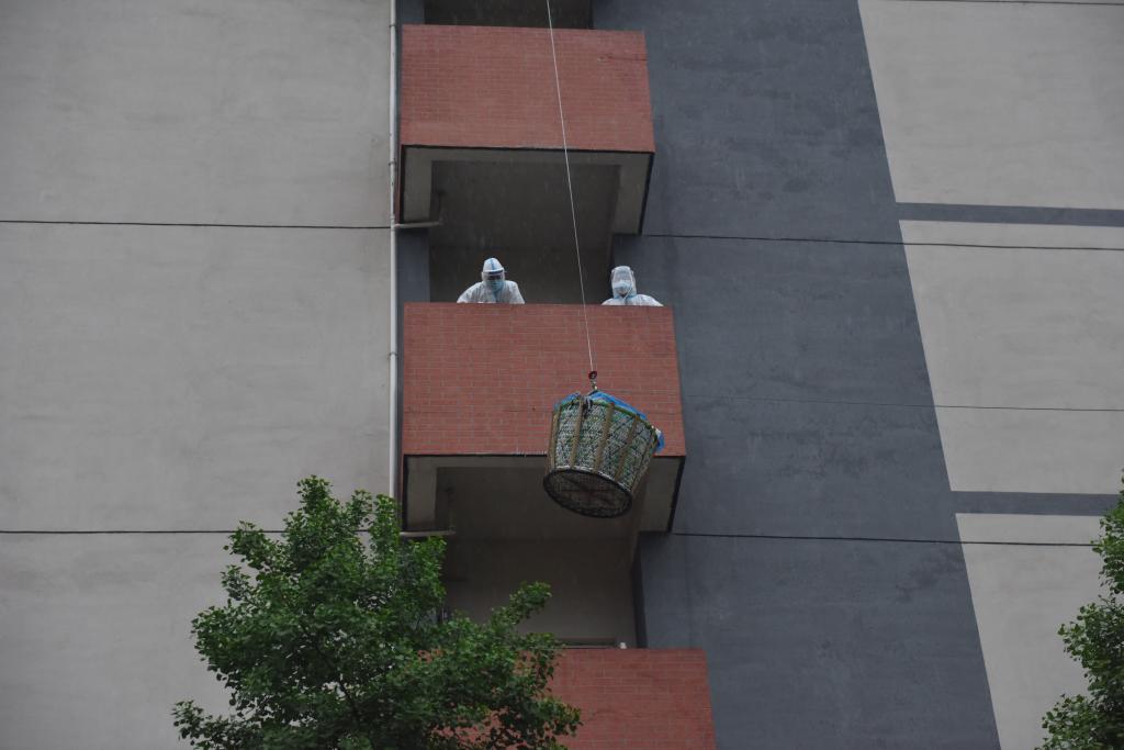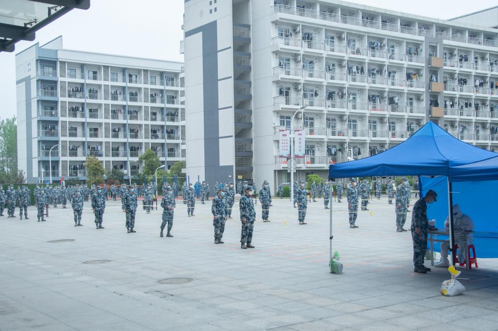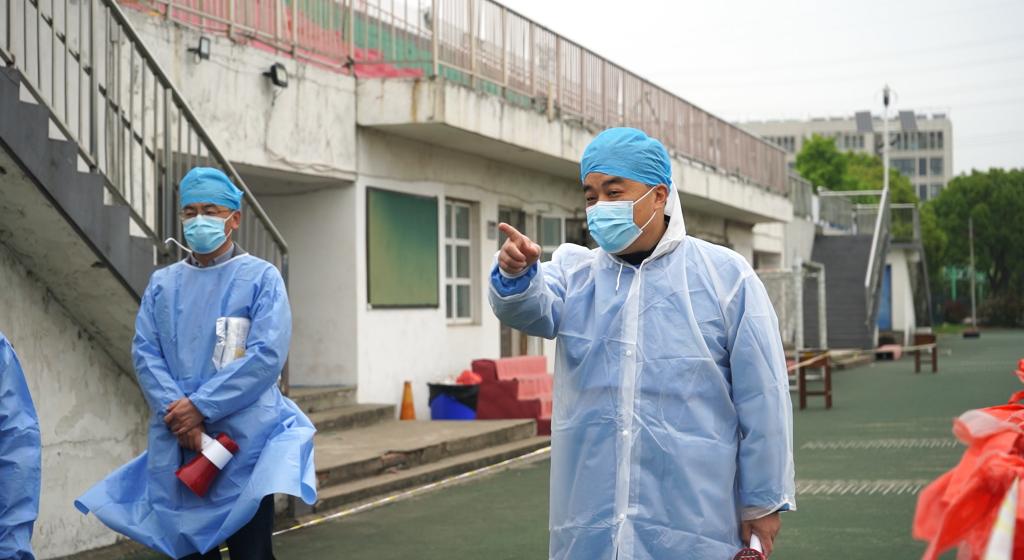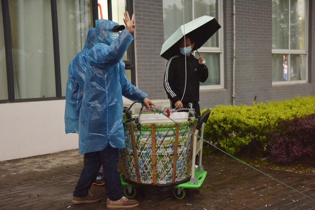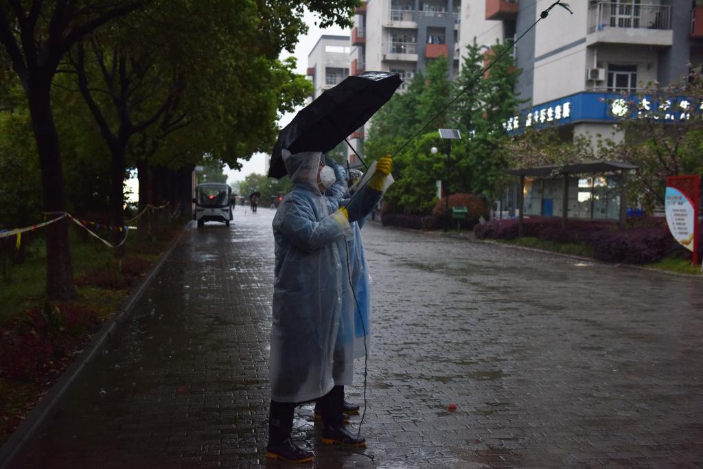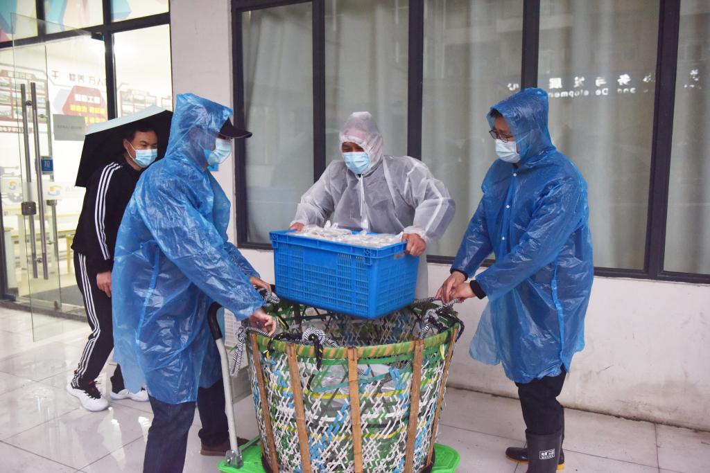 4月13日上午,学校在风雨中开展第十轮全员核酸检测。由于本次核酸检测采取了“双采双检”的采样方法,待检时间较往次更长,风雨中,校领导带领广大志愿者老师们一同冲锋在前,完成了全部在校人员的核酸检测工作。傍晚时分,风雨交加,气温骤冷。党委书记席海涛、院长张瑜率领在校干部职工坚守在送餐一线的岗位上,力保封控楼层的同学们第一时间吃上热饭热菜。(宣传部:杨硕,审核:阚迺庆)