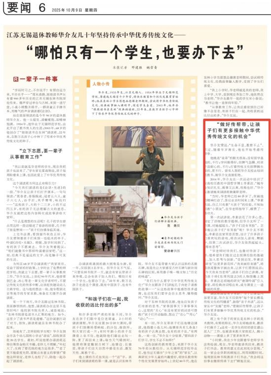 10月9日,《人民日报》在要闻版《无锡退休教师华介友几十年传承中华优秀文化》专版中,采访了我校马克思主义学院李素洁博士,作为“琅琅读书在东林”的接棒传承人,李素洁博士以“唐调吟诵”为纽带,创新文化传播路径,为我校助力中华优秀传统文化传承的生动范例。