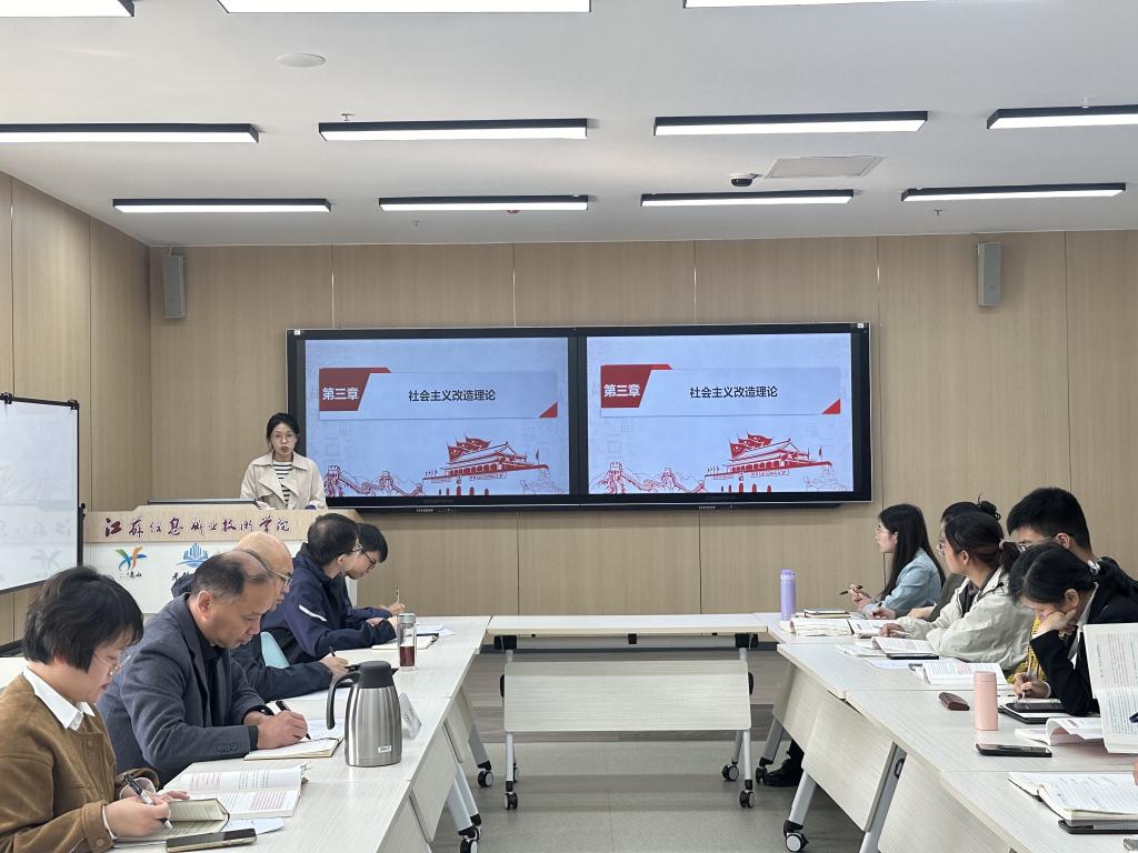 本次教研活动分政治理论学习、集体备课、青年教师能力提升展示与教师培训分享等四个环节。在集体备课环节,高秀楠老师主备“社会主义改造”专题,并针对“资本主义工商业改造”内容进行教学展示。课程组教师、专业课教师、学生代表结合高职学生的特点和需求,围绕如何结合学生“真问题”开展教学以及如何运用生动鲜活的案例讲好思政课展开了交流讨论。