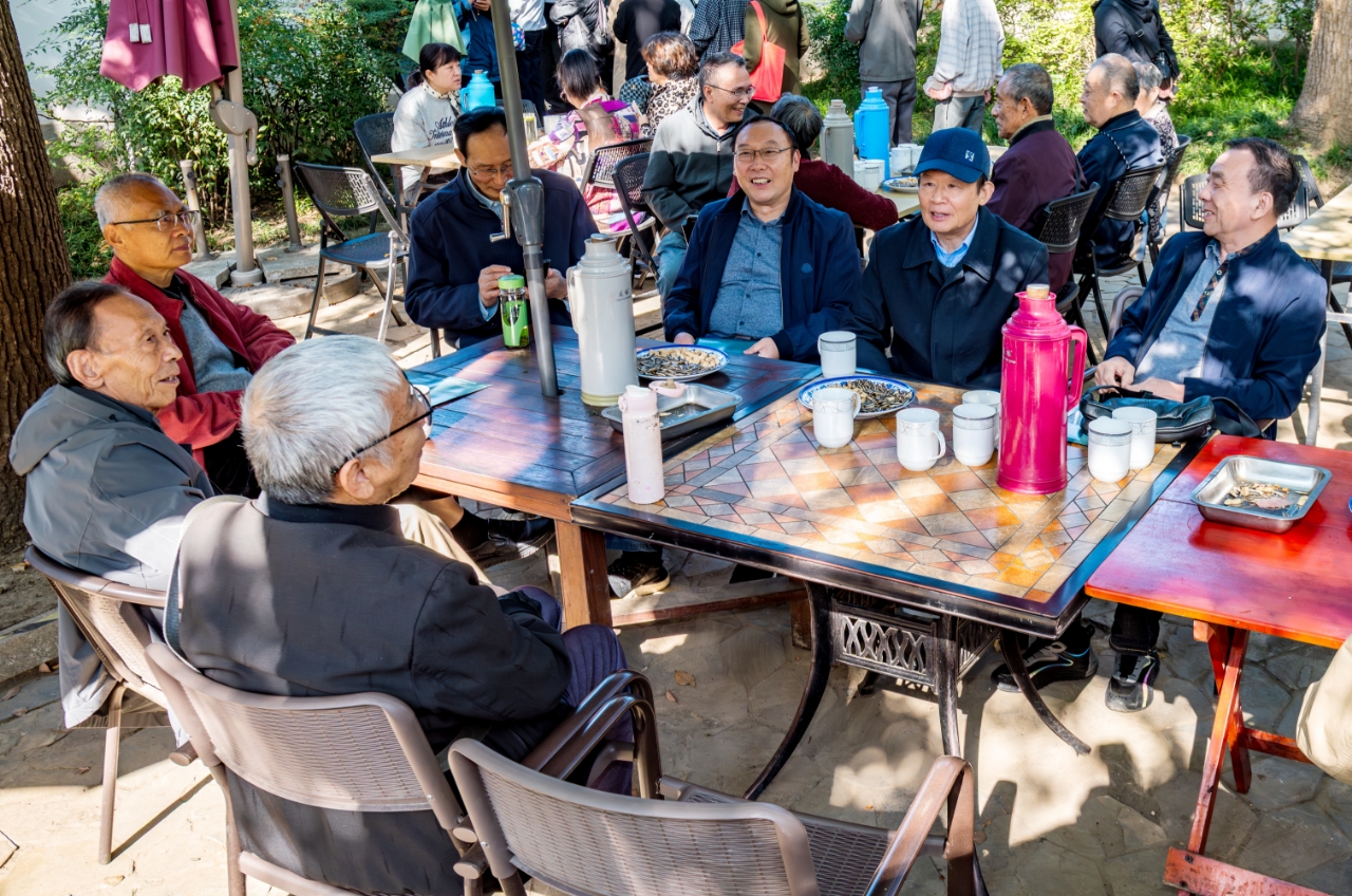 10月29日,恰逢重阳佳节,学校在吟苑公园举办茶话会,300余位离退休老同志欢聚一堂,共庆佳节。学校党委书记左同宇、校长张瑜看望慰问老同志,并向他们致以节日的诚挚问候和美好祝愿。
