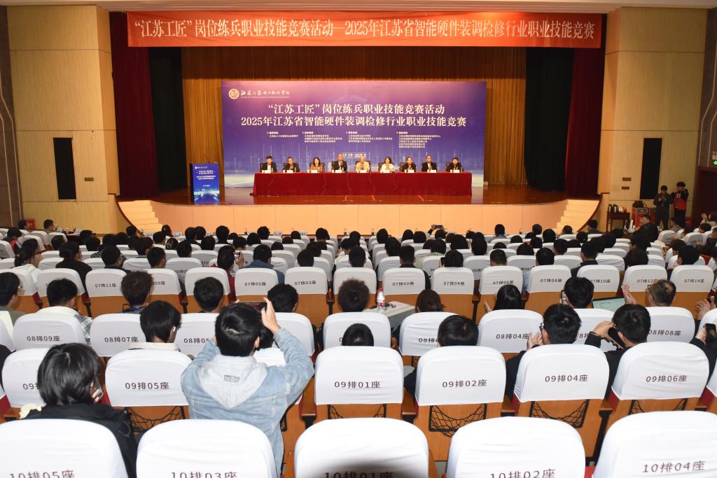 11月8日至9日,“江苏工匠”岗位练兵职业技能竞赛活动——2025年江苏省智能硬件装调检修行业职业技能竞赛在我校成功举办。江苏省测绘地理信息学会理事长施建石、中国陶行知研究会职业教育专业委员会副理事长陆群、南京市人力资源行业协会会长吴晓兰、江苏省测绘地理信息学会秘书长陶海林、中国陶行知研究会职业教育专业委员会秘书长陆勇、南京市退役军人就业创业促进会秘书长金海翔、常州市机器人科技协会会长黄海军,以及我校党委委员、副校长徐振邦等领导出席开幕式。