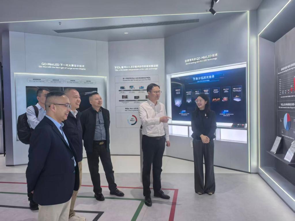 在TCL科技集团,调研团队实地参观了企业产品展厅,近距离接触从柔性OLED到超大尺寸Mini LED等一系列前沿显示技术,系统了解了TCL从地方企业跃升为全球消费电子领军品牌的发展历程。座谈中,TCL科技集团股份有限公司产教融合总监吕志进、产教融合首席专家岳耀颀等相关负责人介绍了TCL产业学院建设规划,双方围绕产教融合生态建设、产业项目转化、学生实习就业、数据赋能平台建设等方面开展交流。
