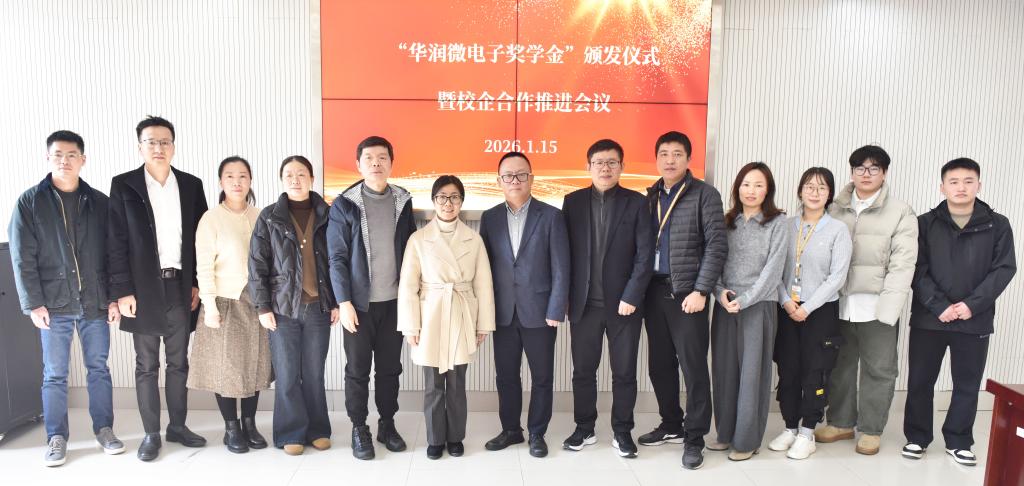 1月15日,“华润微电子奖学金”颁发仪式暨校企合作推进会议在我校微电子学院举行。学校副校长宋丽娜、华润微电子有限公司人力资源总经理王建锋、制造中心人力资源高级总监高鹏飞等领导出席活动。