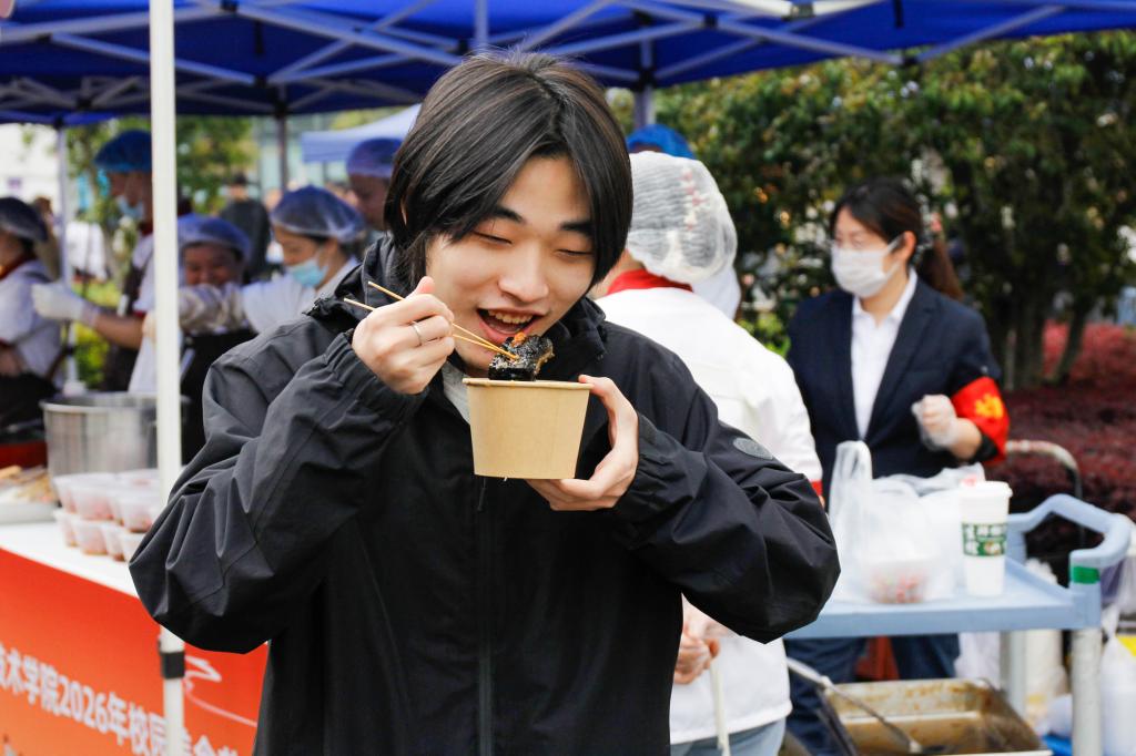 4月14日下午,学校学生食堂广场人声鼎沸,烟火升腾,菁菁校园“食”光正好2026年校园美食节火热举行。学校校长张瑜、党委副书记孙萍、纪委书记刘文平、副校长宋丽娜、孟庆东出席了美食节开幕式。