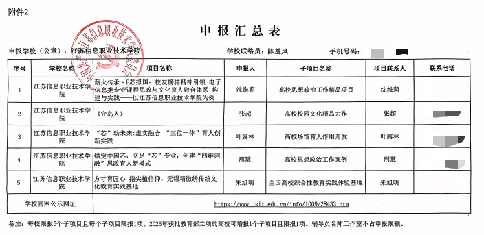 根据江苏省教育厅下发的《省教育厅办公室关于做好教育部2026年度高校思想政治工作质量提升综合改革与精品建设项目和第四批省级项目申报工作的通知》要求,经自主申报、单位推荐、校内外专家评议,拟推荐以下项目申报教育部2026年度高校思想政治工作质量提升综合改革与精品建设项目和第四批省级项目精品建设项目: