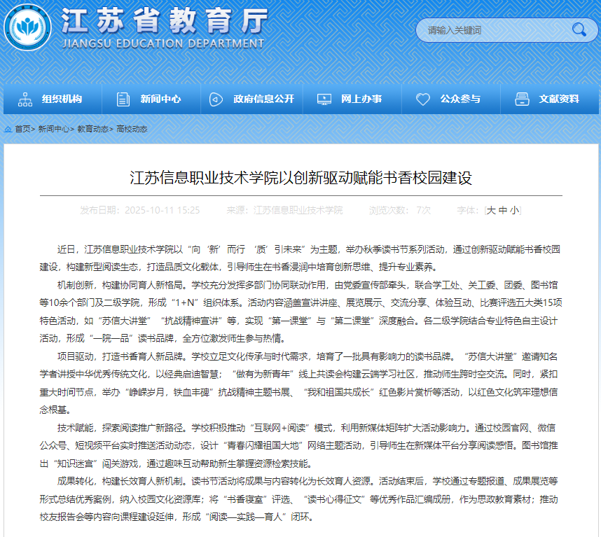 江苏信息职业技术学院以创新驱动赋能书香校园建设