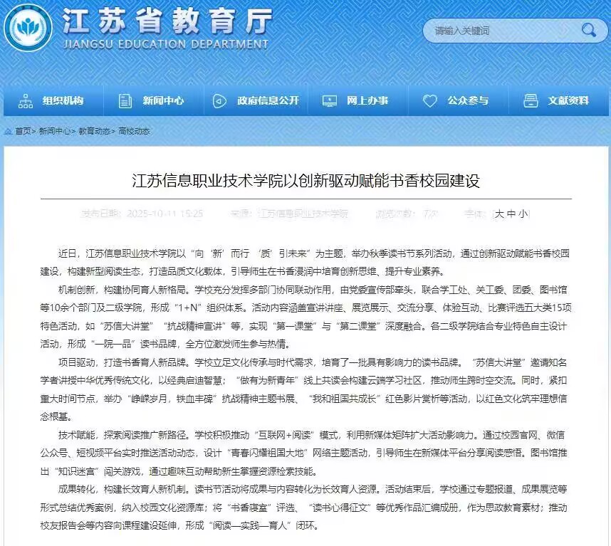 江苏信息职业技术学院以创新驱动赋能书香校园建设