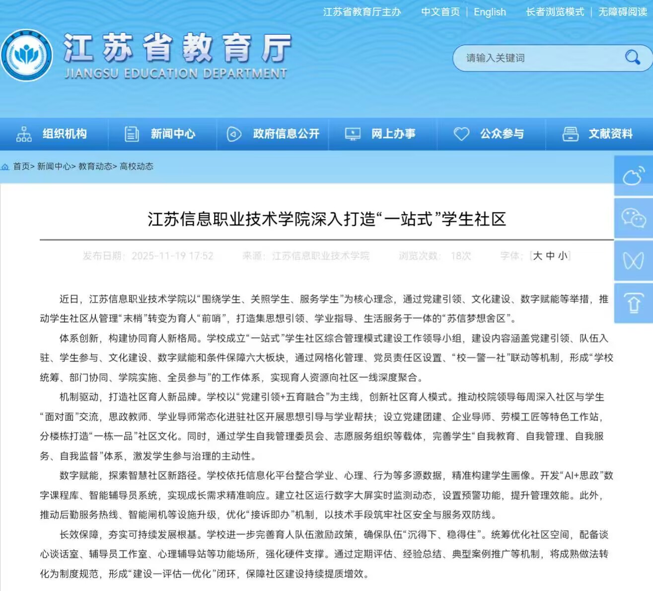 #江苏教育# 江苏信息职业技术学院深入打造“一站式”学生社区