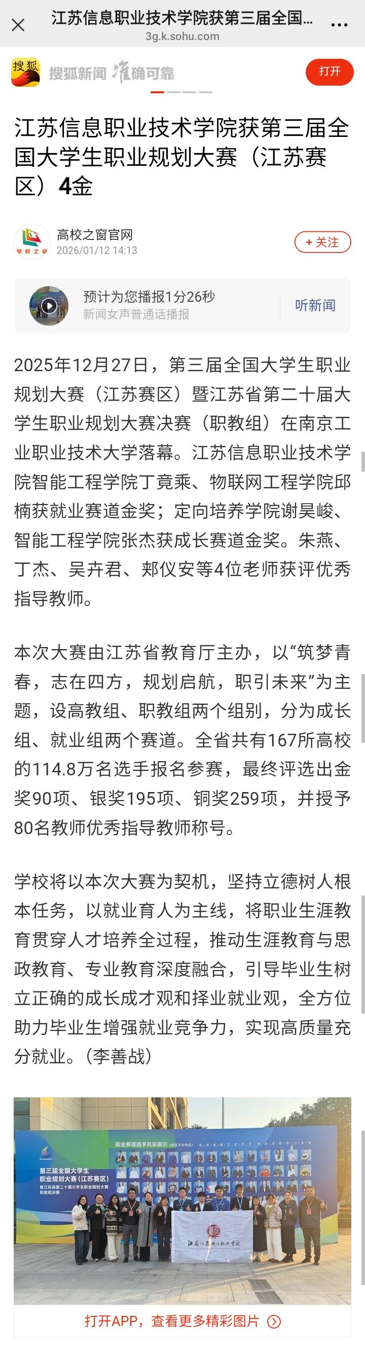 江苏信息职业技术学院获第三届全国大学生职业规划大赛(江苏赛区)4金