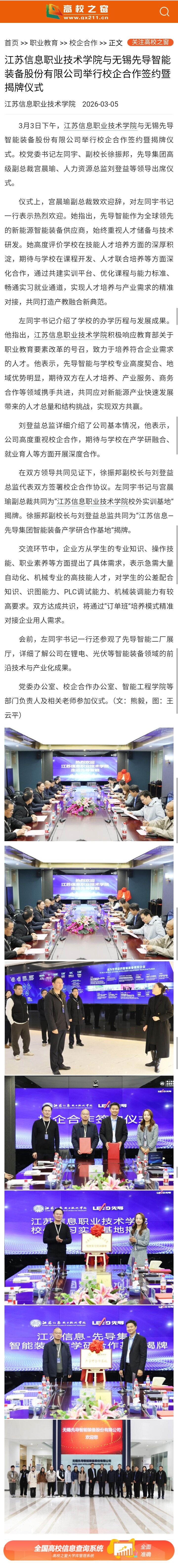 江苏信息职业技术学院与无锡先导智能装备股份有限公司举行校企合作签约暨揭牌仪式