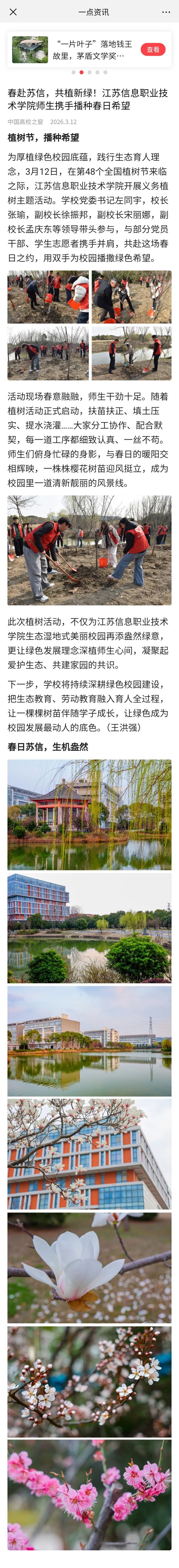 春赴苏信,共植新绿!江苏信息职业技术学院师生携手播种春日希望