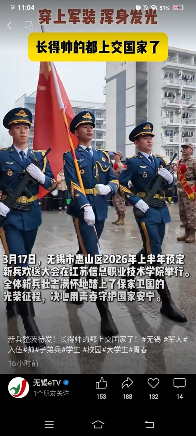 无锡市惠山区2026年上半年预定新兵欢送大会在江苏信息职业技术学院举行