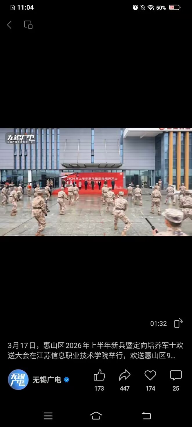3月17日,惠山区2026年上半年新兵暨定向培养军士欢送大会在江苏信息职业技术学院举行。