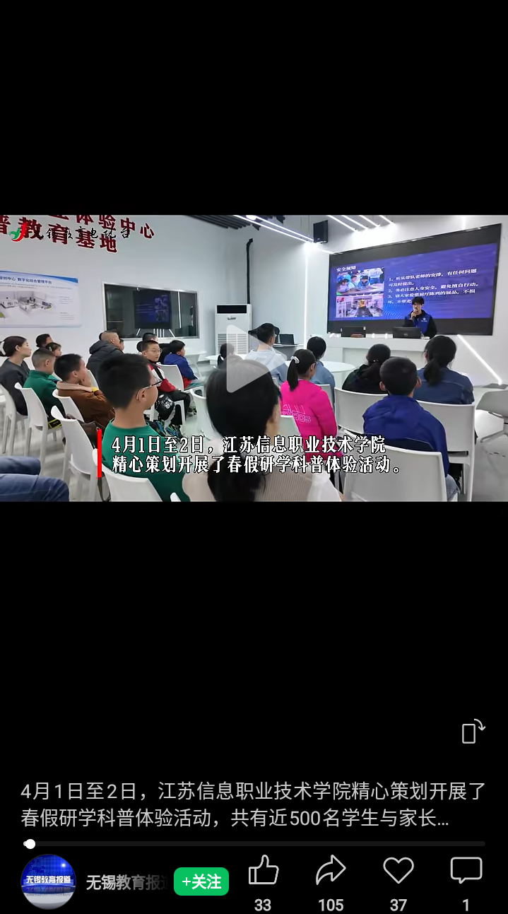 4月1日至2日,江苏信息职业技术学院精心策划开展了春假研学科普体验活动,共有近500名学生与家长参与其中,在实践体验中收获知识与欢笑,让春假变得既充实又有趣。