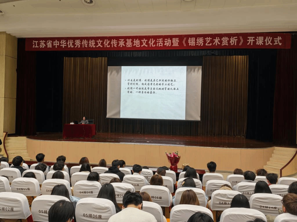 3月11日,无锡精微绣国家级非遗传承人、中国工艺美术大师、我校特聘教授赵红育来校参加江苏省中华优秀传统文化传承基地活动,为师生开讲《锡绣艺术赏析》课。艺术设计学院党总支副书记孙晔珵主持开课仪式。