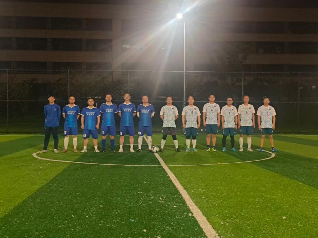 路通视信党支部书记韩晓光和教工第四党支部书记纪永超共同为五人制足球友谊赛开球。(智能工程学院/文:纪永超、陈亮,图:王云平,审核:甘辉)