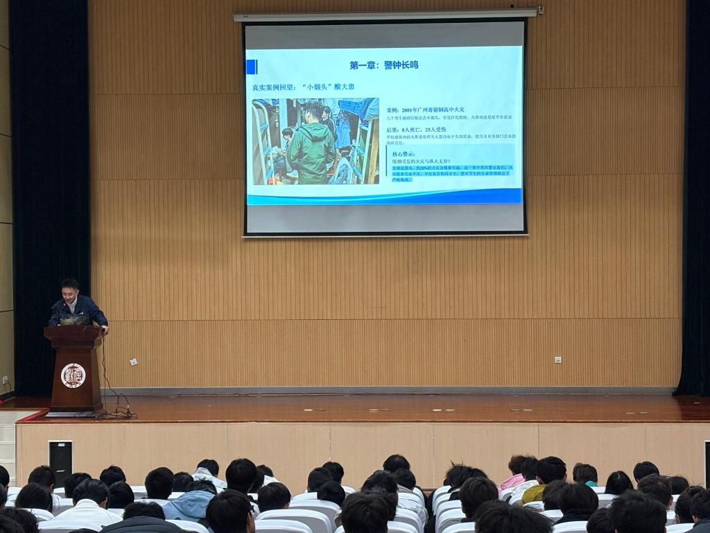 讲座中,丁旬顺经理结合高校典型火灾案例,系统阐述了火灾预防的重要性,详细讲解了常见火灾隐患的识别方法、火场科学逃生自救技巧及各类消防器材的正确使用方法。他强调,维护消防安全是每一位师生的共同责任,必须做到警钟长鸣、防患未然。