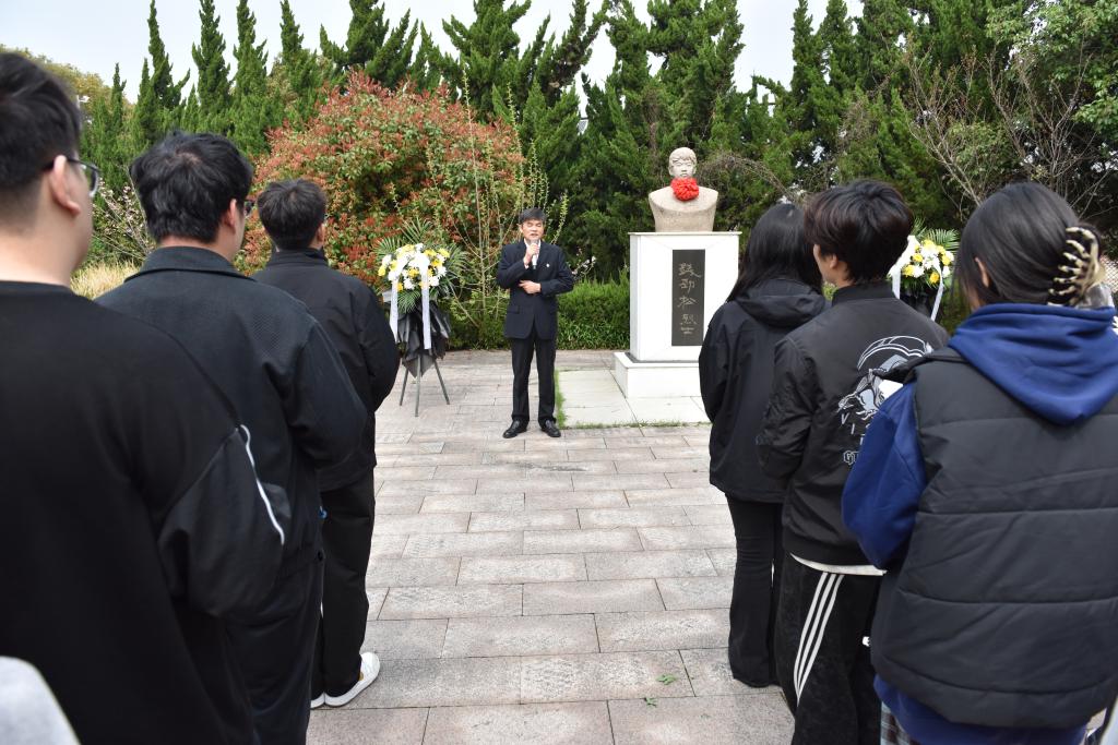 祭奠活动气氛庄严,师生列队整齐,向钱劲松烈士石像行三鞠躬礼,敬献花篮。钱劲松烈士生前班主任朱建中老师深情讲述了钱劲松烈士为保卫国家财产和人民生命安全,于1990年5月12日凌晨与抢劫犯英勇搏斗、重伤后光荣牺牲的感人事迹,并回忆了钱劲松在校期间坚定理想、刻苦学习、关爱同学的点点滴滴。朱建中老师勉励青年教师落实立德树人根本任务,鼓励青年学子珍惜时光、发奋学习、传承“劲松精神”,争做有理想、敢担当、能吃苦、肯奋斗的新时代好青年。