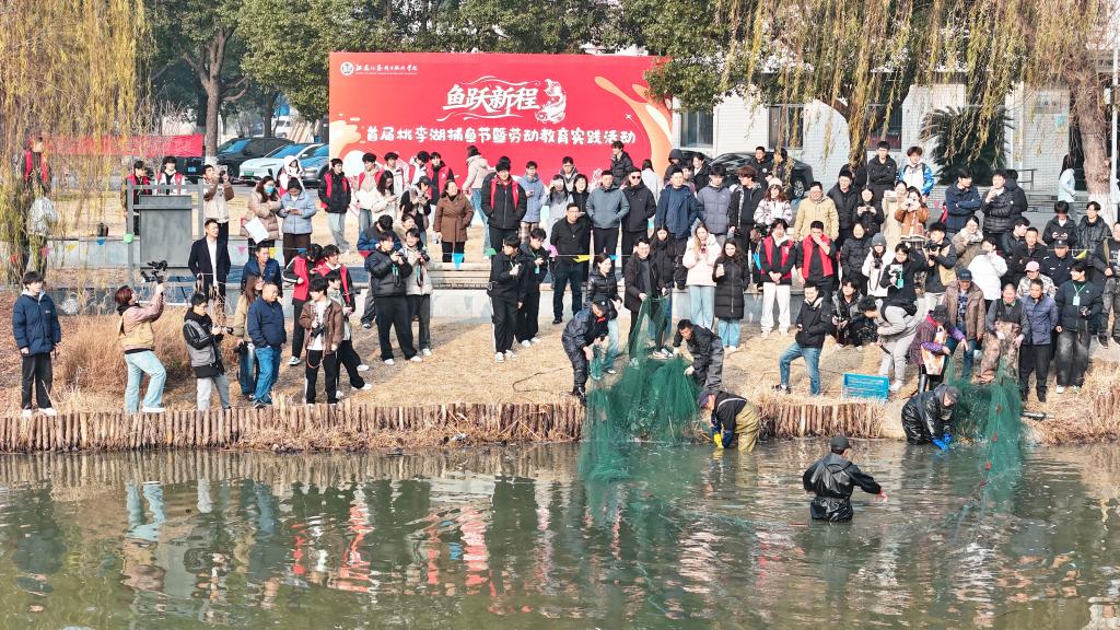 为迎接2026新年的到来,12月30日,学校举办以“鱼跃新程”为主题的首届桃李湖捕鱼节暨劳动教育实践活动。