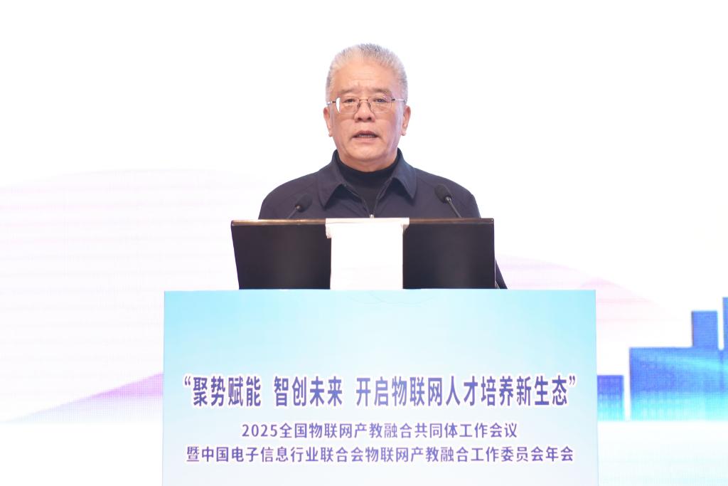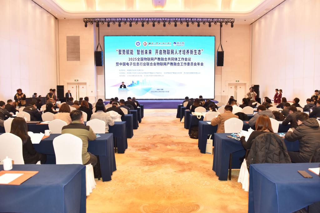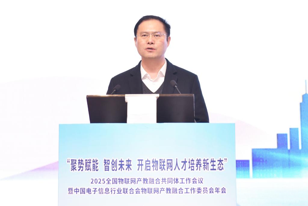 12月5日,2025全国物联网产教融合共同体工作会议暨中国电子信息行业联合会物联网产教融合工作委员会年会在我校成功举办。中国电子信息行业联合会副会长徐金声、高校毕业生就业协会教育数字化服务工作委员会秘书长孙文升、无锡市工业和信息化局副局长秦晓华、工信行指委电子信息分委会副秘书长兼新一代信息技术产业研究院院长李颋、常州工业职业技术学院党委书记席海涛,我校党委书记左同宇、校长张瑜等领导出席会议。会议由副校长徐振邦主持。