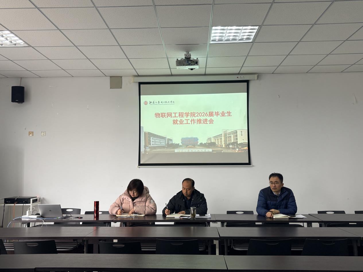 为落实学校就业工作部署,压实就业责任,新学期伊始,物联网工程学院(信息安全学院)第一时间召开2026届毕业生就业工作推进会。会议由学院党总支副书记张薇主持,党总支书记华驰、院长季云峰出席。