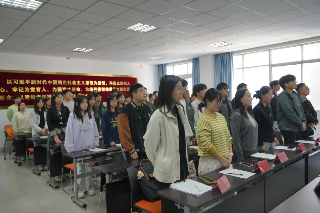 典礼在全体师生齐唱《义勇军进行曲》中拉开序幕,现场气氛庄严肃穆。本次培训,分党校将通过专题辅导、视频教学、分组讨论、实践锻炼等形式,对全体学员进行党的基本理论、基本路线、基本方略和党性党纪学习教育,切实提升政治素养和理论水平。王立老师宣读了此次培训计划和培训要求,鼓励同学们珍惜学习机会,严格遵循培训班管理要求,不断增强时代使命感和历史责任感,在思想上、行动上积极向党组织靠拢。学员代表沈毅同学作代表发言,他表示,将和全体入党积极分子一同努力学习党的基础知识和最新理论成果,以更加优异的成绩回报组织的培养和期望。最后,学生党支部书记徐荣玲老师围绕“为什么学、学什么、怎么学”,提出将“端正入党动机”作为终身课题,要求学员们成长为“政治清醒、专业扎实、心怀家国”的青年先锋。