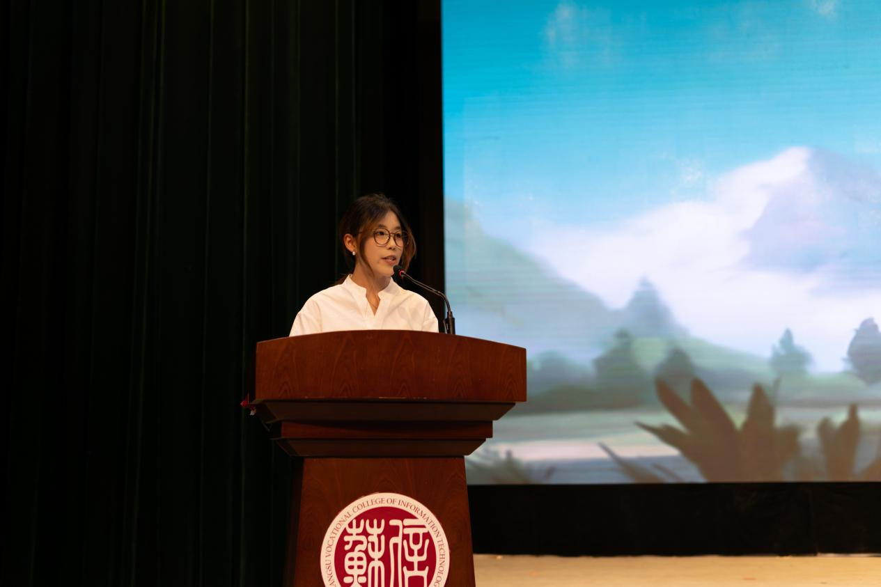 物联网231班隆金蓉同学代表在校生发言。她分享了这两年来自己对大学生活的总结与思考,鼓励2025级新生珍惜大学时光,深耕所学专业,锤炼专业技能,拓展学科兴趣,拥抱多元成长。在苏信,书写属于自己的灿烂篇章。