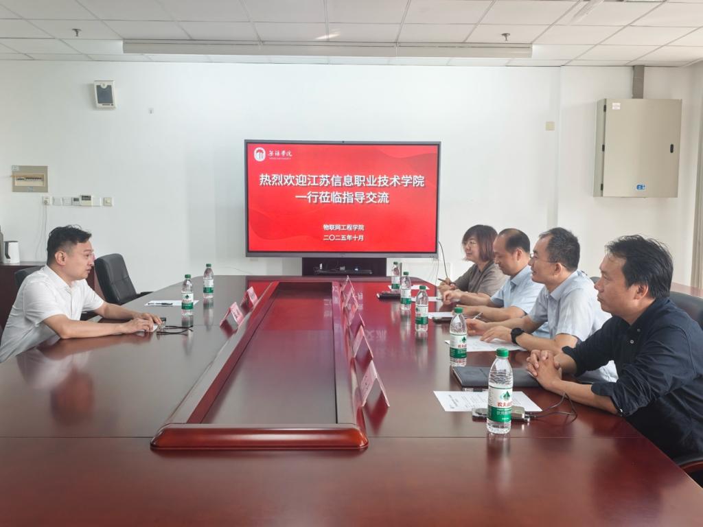 华驰书记和季云峰院长分别围绕分院党建工作、专业建设、师资队伍建设、校企合作经验、科研成果和社会服务等方面介绍了江苏信息职业技术学院物联网工程学院的基本情况,并希望要向无锡学院学习,期待双方能在党建共建、产教融合、人才培养、社会服务等方面深度合作。