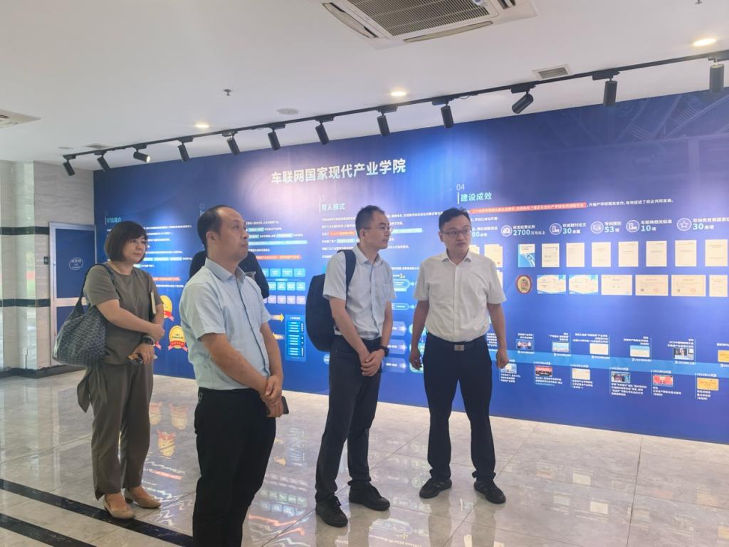 会前,王泉院长带领华驰书记一行参观了全国唯一的省部级车联网产业学院相关实验室和工作室。