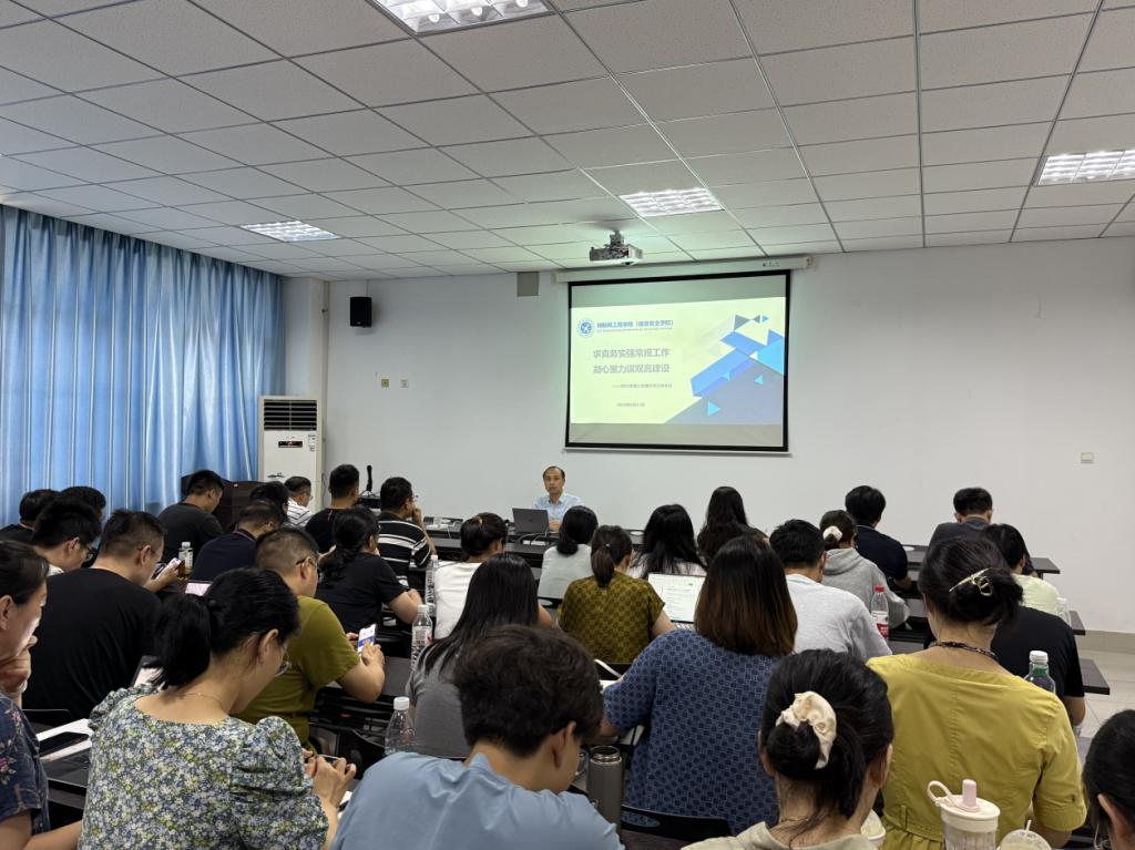 2025年8月31日下午,物联网工程学院(信息安全学院)在J4-203组织开展新学期教职工大会,党总支书记华驰主持会议。