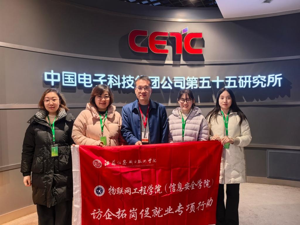 2026年1月6日,物联网工程学院(信息安全学院)党总支副书记张薇一行赴中国电子科技集团公司第五十五研究所开展走访交流。中国电子科技集团公司第五十五研究所人力资源部主任谢俊领热情接待了张薇副书记一行,双方围绕人才培养、招聘合作、校企协同发展等议题展开深入洽谈。