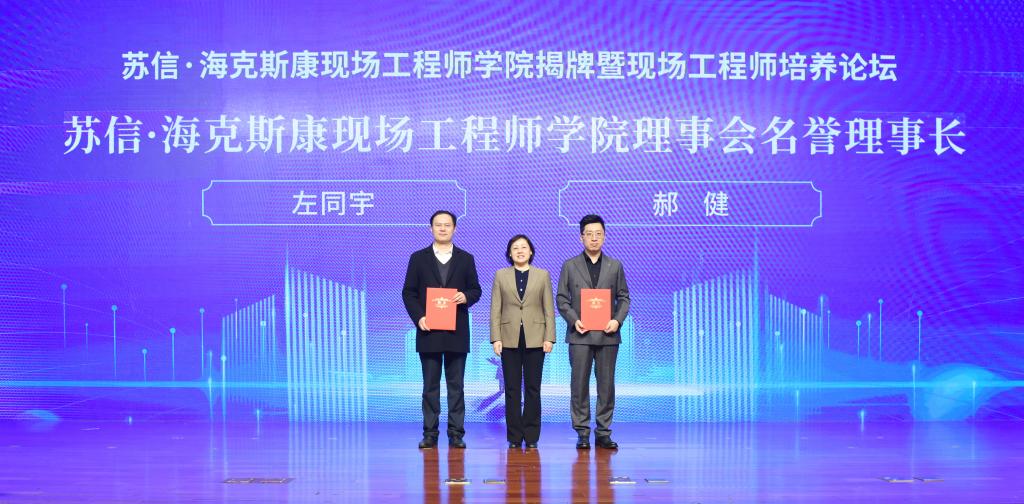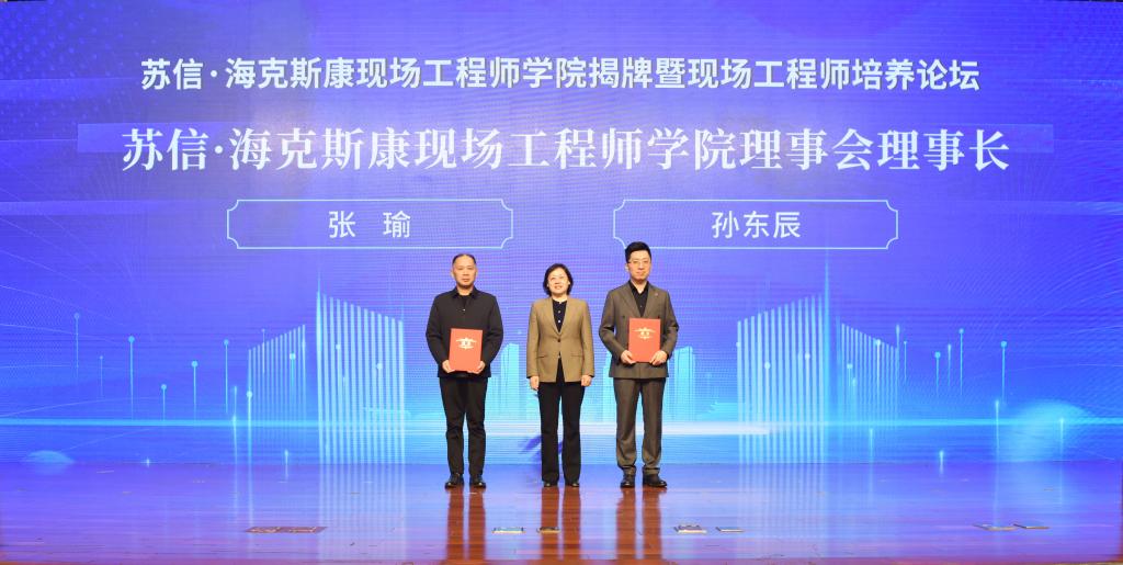 在揭牌仪式上,苏信·海克斯康现场工程师学院同步成立了理事会。郑丽梅主任为党委书记左同宇、海克斯康大中华区执行总裁郝健颁发名誉理事长聘书;为校长张瑜、海克斯康大中华区教育生态事业部总经理孙东辰颁发理事长聘书。