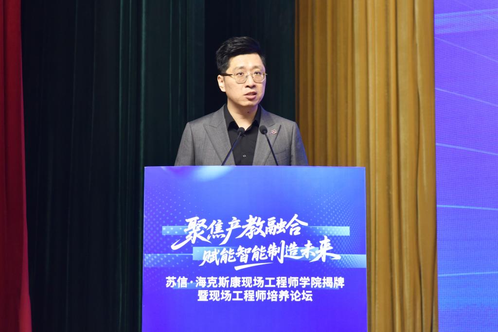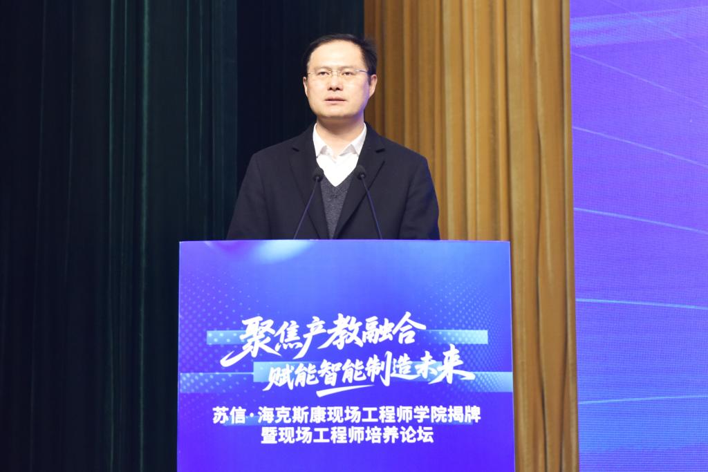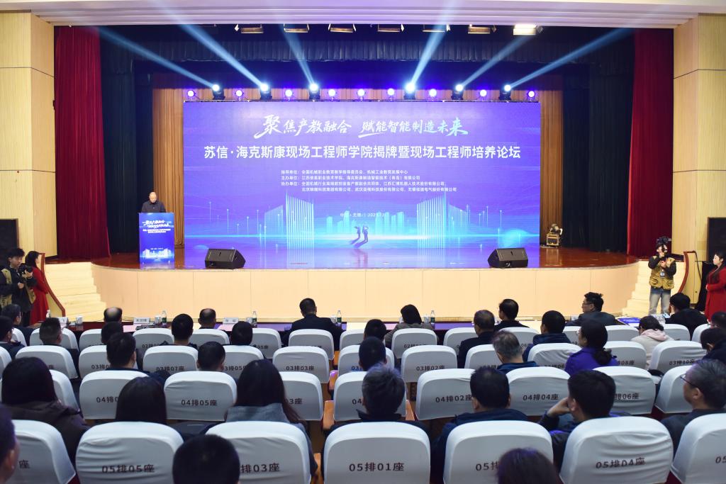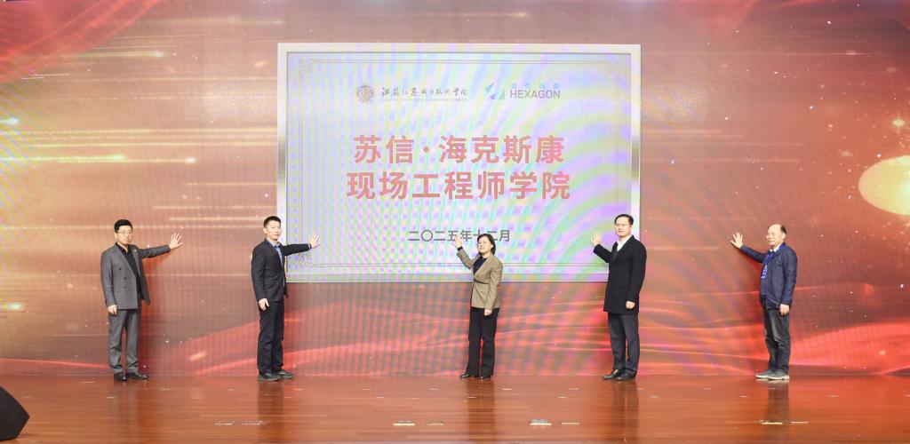 12月10日,由全国机械职业教育指导委员会与机械工业教育发展中心指导、江苏信息职业技术学院与海克斯康制造智能技术(青岛)有限公司联合主办的苏信·海克斯康现场工程师学院揭牌仪式暨现场工程师培养论坛在我校举行。全国机械职业教育指导委员会秘书长、机械工业教育发展中心主任郑丽梅,教育部职业教育发展中心教师发展处副处长涂三广,海克斯康大中华区教育生态事业部总经理孙东辰,学校党委书记左同宇、校长张瑜出席仪式。校党委委员、副校长徐振邦主持大会。
