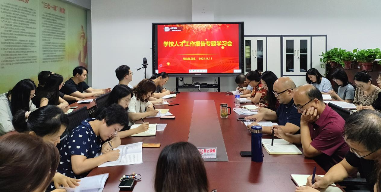 为贯彻落实党的二十届三中全会和《关于弘扬教育家精神加强新时代高素质专业化教师队伍建设的意见》的会议精神和决策部署,进一步推动我校人才工作高质量发展。9月11日下午,马院党总支在图书馆7楼2720会议室召开学校人才工作报告专题学习会,会议由党总支副书记刘海滨同志主持,全体教职工参加会议。