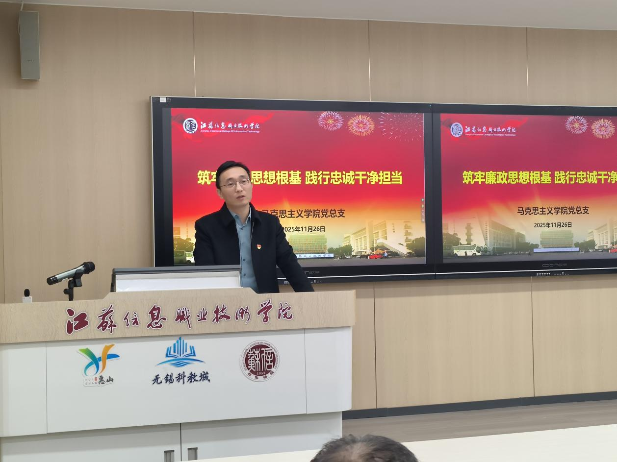 为落实全面从严治党要求,推进党风廉政建设,11月26日,马克思主义学院党总支书记高鹏以“筑牢廉政思想根基,践行忠诚干净担当”为主题,为全体教师党员讲授廉政教育专题党课。